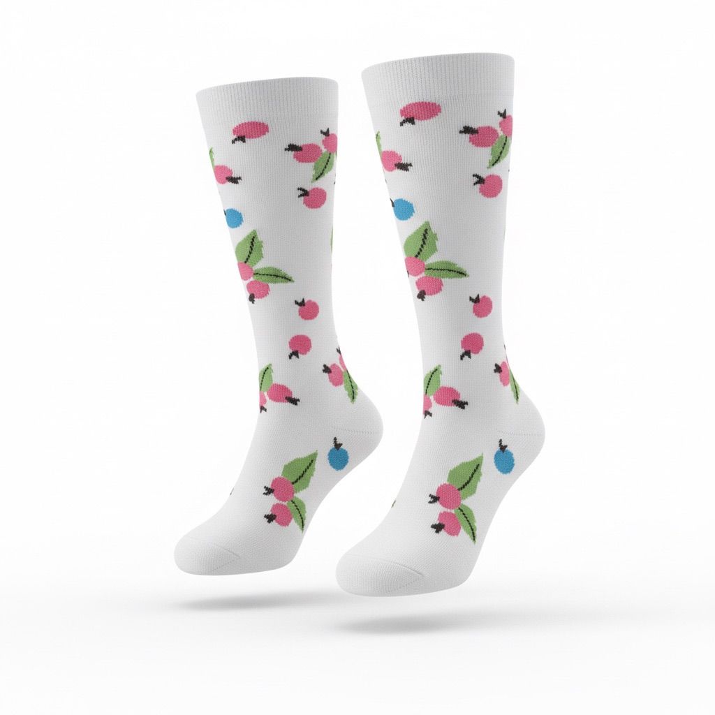 Medias de compresión - blanca con flor rosa